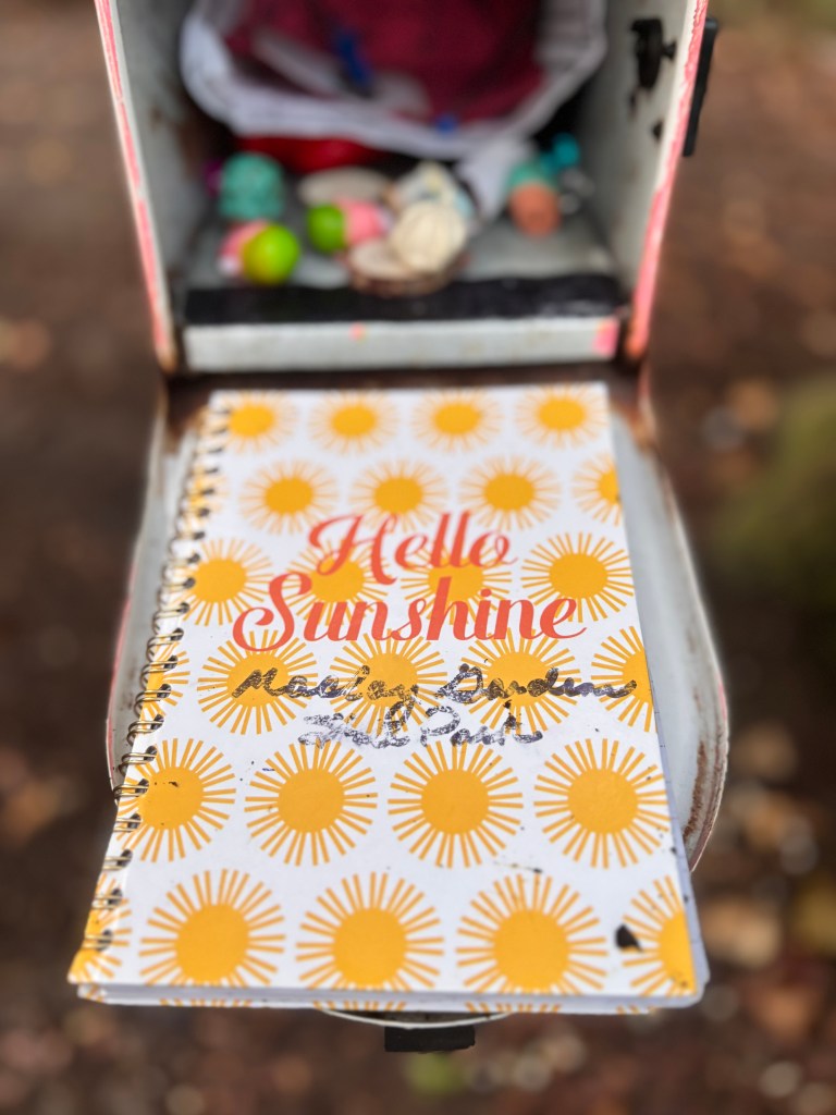 The mailbox was filled with little tokens, notes and gifts. Tiny figurines, monogrammed tree coins; an electronic toy. Someone had even left a crumpled five-dollar bill, which was such an intentional thing to leave, I have to believe it was meant as a gift to someone who really needed the money (of course, I was channeling the forest fairies and that seemed like the most plausible explanation).